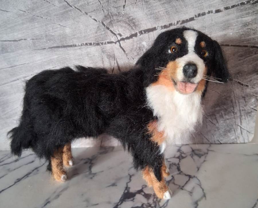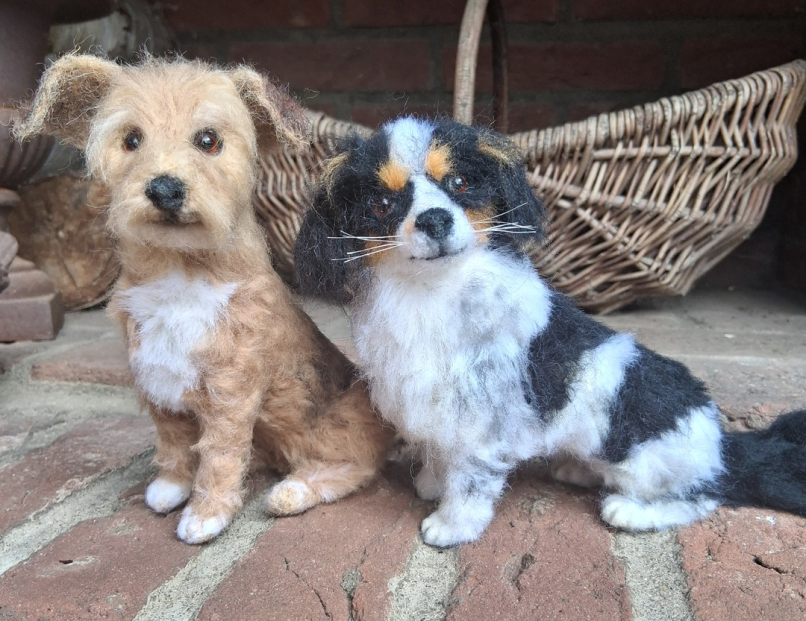 Aus naturbelassener, gereinigter Schafswolle, in der Machart des Trockenfilzens, auch Nadelfilzen genannt, würde ich auch gerne Ihren Liebling verewigen.